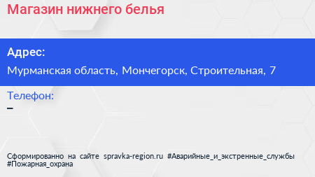 Магазин нижнего белья по адресу Мурманская область, Мончегорск, Строительная, 7 в дальнейшем Организация, размещена в следующих категориях: