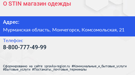 O`STIN, магазин одежды по адресу Мурманская область, Мончегорск, Комсомольская, 21 в дальнейшем Организация, размещена в следующих категориях: