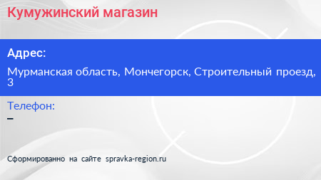 Кумужинский, магазин по адресу Мурманская область, Мончегорск, Строительный проезд, 3 в дальнейшем Организация, размещена в следующих категориях: