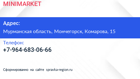 MINIMARKET по адресу Мурманская область, Мончегорск, Комарова, 15 в дальнейшем Организация, размещена в следующих категориях: