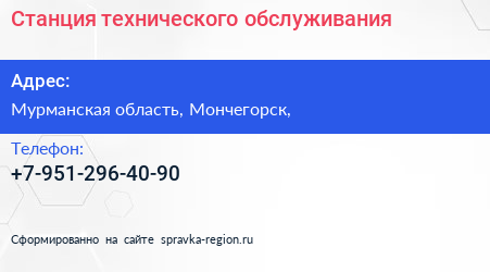 Станция технического обслуживания по адресу Мурманская область, Мончегорск, в дальнейшем Организация, размещена в следующих категориях: