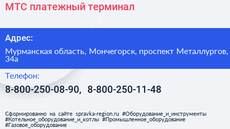 МТС, платежный терминал по адресу Мурманская область, Мончегорск, проспект Металлургов, 34а в дальнейшем Организация, размещена в следующих категориях: