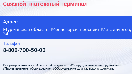 Связной, платежный терминал по адресу Мурманская область, Мончегорск, проспект Металлургов, 34 в дальнейшем Организация, размещена в следующих категориях: