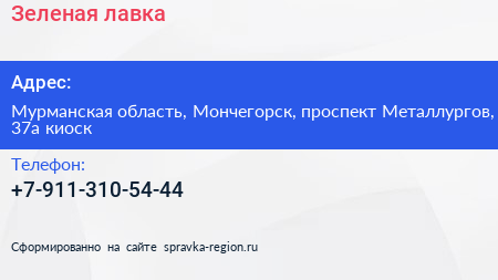 Зеленая лавка по адресу Мурманская область, Мончегорск, проспект Металлургов, 37а киоск в дальнейшем Организация, размещена в следующих категориях: