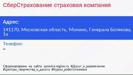 СберСтрахование, страховая компания по адресу 141170, Московская область, Монино, Генерала Белякова, 1а в дальнейшем Организация, размещена в следующих категориях:
