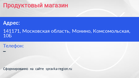 Продуктовый магазин по адресу 141171, Московская область, Монино, Комсомольская, 10Б в дальнейшем Организация, размещена в следующих категориях: