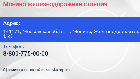 Монино, железнодорожная станция по адресу 141171, Московская область, Монино, Железнодорожная, 1 к3 в дальнейшем Организация, размещена в следующих категориях: