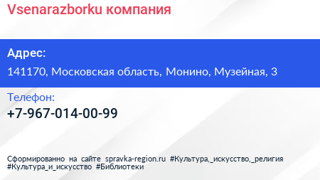 Vsenarazborku, компания по адресу 141170, Московская область, Монино, Музейная, 3 в дальнейшем Организация, размещена в следующих категориях: