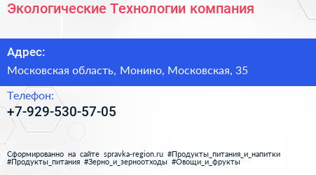Экологические Технологии, компания по адресу Московская область, Монино, Московская, 35 в дальнейшем Организация, размещена в следующих категориях: