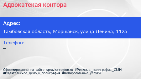Адвокатская контора по адресу Тамбовская область, Моршанск, улица Ленина, 112а в дальнейшем Организация, размещена в следующих категориях: