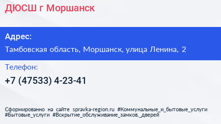 ДЮСШ, г. Моршанск по адресу Тамбовская область, Моршанск, улица Ленина, 2 в дальнейшем Организация, размещена в следующих категориях: