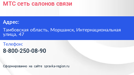 МТС, сеть салонов связи по адресу Тамбовская область, Моршанск, Интернациональная улица, 47 в дальнейшем Организация, размещена в следующих категориях: