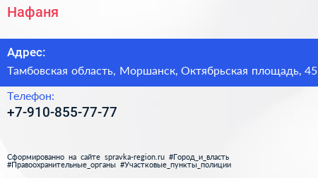 Нафаня по адресу Тамбовская область, Моршанск, Октябрьская площадь, 45 в дальнейшем Организация, размещена в следующих категориях: