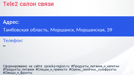 Tele2, салон связи по адресу Тамбовская область, Моршанск, Моршанская, 39 в дальнейшем Организация, размещена в следующих категориях: