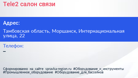 Tele2, салон связи по адресу Тамбовская область, Моршанск, Интернациональная улица, 22 в дальнейшем Организация, размещена в следующих категориях: