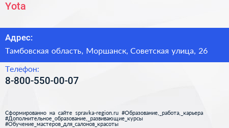 Yota по адресу Тамбовская область, Моршанск, Советская улица, 26 в дальнейшем Организация, размещена в следующих категориях: