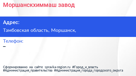 Моршанскхиммаш, завод по адресу Тамбовская область, Моршанск, в дальнейшем Организация, размещена в следующих категориях: