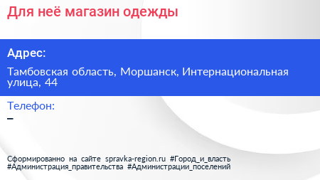 Для неё, магазин одежды по адресу Тамбовская область, Моршанск, Интернациональная улица, 44 в дальнейшем Организация, размещена в следующих категориях:
