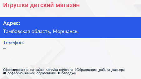 Игрушки, детский магазин по адресу Тамбовская область, Моршанск, в дальнейшем Организация, размещена в следующих категориях: