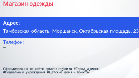 Магазин одежды по адресу Тамбовская область, Моршанск, Октябрьская площадь, 23 в дальнейшем Организация, размещена в следующих категориях: