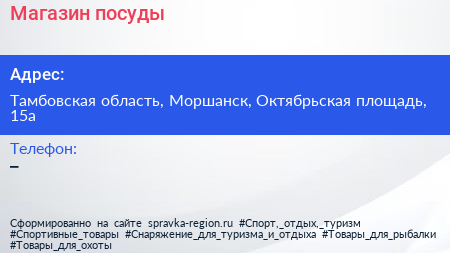 Магазин посуды по адресу Тамбовская область, Моршанск, Октябрьская площадь, 15а в дальнейшем Организация, размещена в следующих категориях: