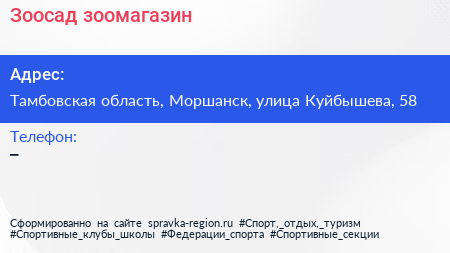Зоосад, зоомагазин по адресу Тамбовская область, Моршанск, улица Куйбышева, 58 в дальнейшем Организация, размещена в следующих категориях:
