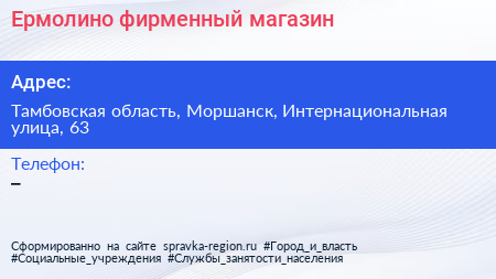 Ермолино, фирменный магазин по адресу Тамбовская область, Моршанск, Интернациональная улица, 63 в дальнейшем Организация, размещена в следующих категориях: