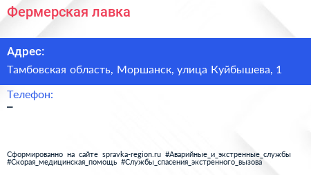 Фермерская лавка по адресу Тамбовская область, Моршанск, улица Куйбышева, 1 в дальнейшем Организация, размещена в следующих категориях: