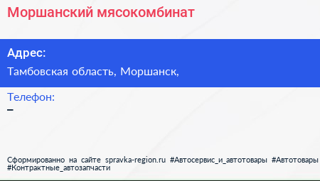 Моршанский мясокомбинат по адресу Тамбовская область, Моршанск, в дальнейшем Организация, размещена в следующих категориях: