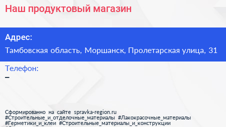 Наш, продуктовый магазин по адресу Тамбовская область, Моршанск, Пролетарская улица, 31 в дальнейшем Организация, размещена в следующих категориях: