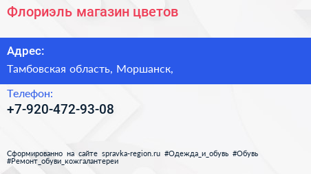 Флориэль, магазин цветов по адресу Тамбовская область, Моршанск, в дальнейшем Организация, размещена в следующих категориях: