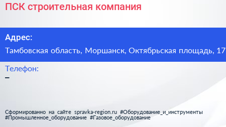 ПСК, строительная компания по адресу Тамбовская область, Моршанск, Октябрьская площадь, 17 в дальнейшем Организация, размещена в следующих категориях: