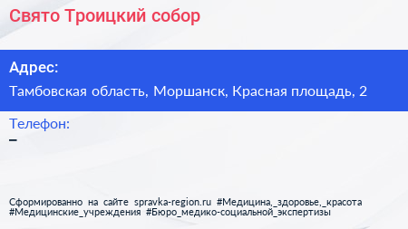 Свято-Троицкий собор по адресу Тамбовская область, Моршанск, Красная площадь, 2 в дальнейшем Организация, размещена в следующих категориях: