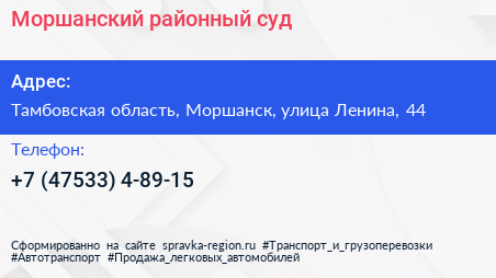 Моршанский районный суд по адресу Тамбовская область, Моршанск, улица Ленина, 44 в дальнейшем Организация, размещена в следующих категориях:
