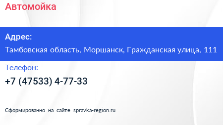 Автомойка по адресу Тамбовская область, Моршанск, Гражданская улица, 111 в дальнейшем Организация, размещена в следующих категориях: