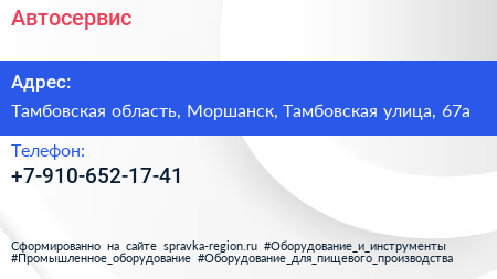 Автосервис по адресу Тамбовская область, Моршанск, Тамбовская улица, 67а в дальнейшем Организация, размещена в следующих категориях: