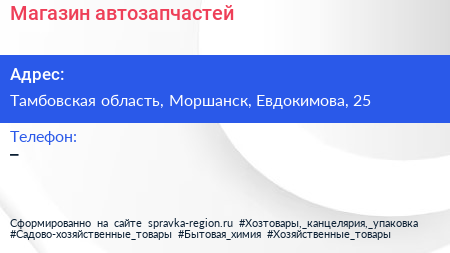 Магазин автозапчастей по адресу Тамбовская область, Моршанск, Евдокимова, 25 в дальнейшем Организация, размещена в следующих категориях: