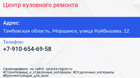 Центр кузовного ремонта по адресу Тамбовская область, Моршанск, улица Куйбышева, 12 в дальнейшем Организация, размещена в следующих категориях:
