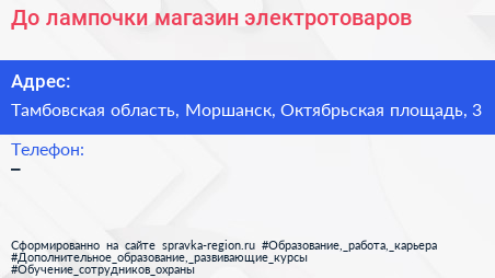 До лампочки, магазин электротоваров по адресу Тамбовская область, Моршанск, Октябрьская площадь, 3 в дальнейшем Организация, размещена в следующих категориях: