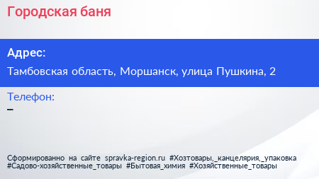 Городская баня по адресу Тамбовская область, Моршанск, улица Пушкина, 2 в дальнейшем Организация, размещена в следующих категориях: