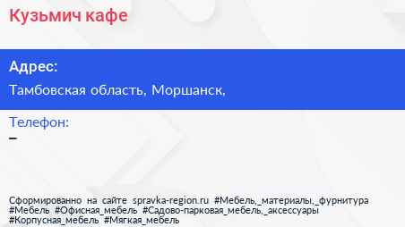 Кузьмич, кафе по адресу Тамбовская область, Моршанск, в дальнейшем Организация, размещена в следующих категориях: