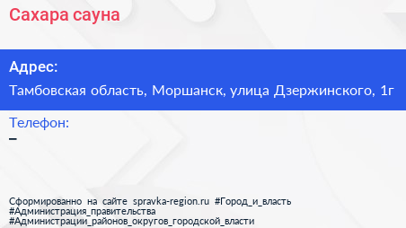 Сахара, сауна по адресу Тамбовская область, Моршанск, улица Дзержинского, 1г в дальнейшем Организация, размещена в следующих категориях: