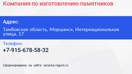 Компания по изготовлению памятников по адресу Тамбовская область, Моршанск, Интернациональная улица, 17 в дальнейшем Организация, размещена в следующих категориях:
