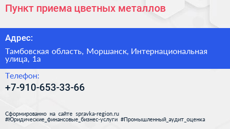 Пункт приема цветных металлов по адресу Тамбовская область, Моршанск, Интернациональная улица, 1а в дальнейшем Организация, размещена в следующих категориях: