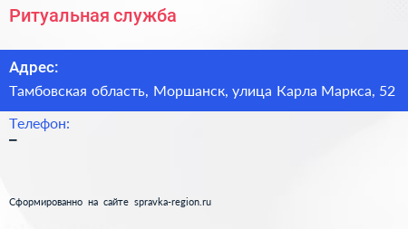Ритуальная служба по адресу Тамбовская область, Моршанск, улица Карла Маркса, 52 в дальнейшем Организация, размещена в следующих категориях: