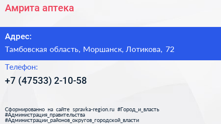 Амрита, аптека по адресу Тамбовская область, Моршанск, Лотикова, 72 в дальнейшем Организация, размещена в следующих категориях: