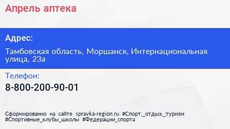 Апрель, аптека по адресу Тамбовская область, Моршанск, Интернациональная улица, 23а в дальнейшем Организация, размещена в следующих категориях:
