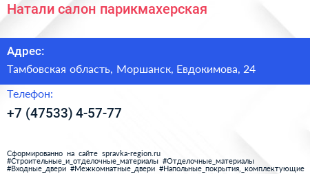 Натали, салон-парикмахерская по адресу Тамбовская область, Моршанск, Евдокимова, 24 в дальнейшем Организация, размещена в следующих категориях: