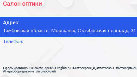 Салон оптики по адресу Тамбовская область, Моршанск, Октябрьская площадь, 31 в дальнейшем Организация, размещена в следующих категориях: