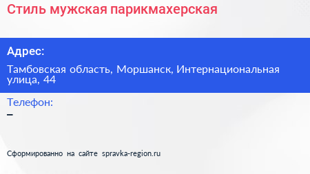 Стиль, мужская парикмахерская по адресу Тамбовская область, Моршанск, Интернациональная улица, 44 в дальнейшем Организация, размещена в следующих категориях: